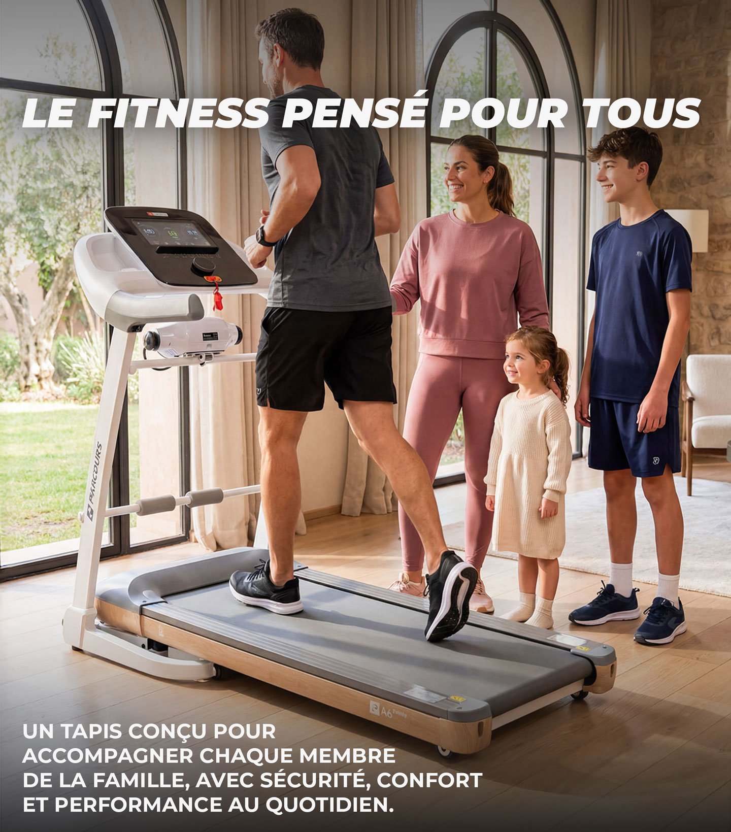 Le A6 Family s'adapte aux différents rythmes et objectifs de chaque membre. De la marche douce à la course intense, il offre une expérience sur mesure et sécurisée, faisant de l'exercice un moment de plaisir partagé pour tous