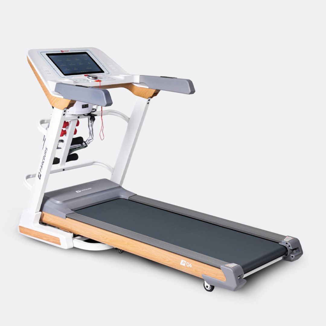 Propulsé par un moteur silencieux de 4 CV, le Q6 atteint 18 km/h pour vos sprints. L'inclinaison automatique jusqu'à 20° simule des côtes ardues, intensifiant le travail musculaire et maximisant la combustion calorique.
