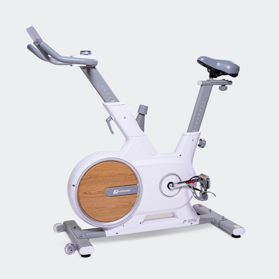 Simulez l’énergie d’un cours de spinning avec un vélo robuste, une selle mousse-gel confortable et des roues de déplacement pour un usage facile et intensif.